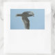 A photograph of a seagull flying in the sky.