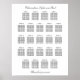 23 Table Elegant Minimalist Seating Chart, please personalize the names of the couple and the names of the guests along with any of the other text that you may wish to personalize. An elegant seating chart featuring stylish black text in a clean minimalistic layout on a white background.