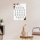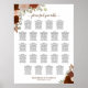 This 23 table wedding seating chart features a beautiful autumn floral design with hand painted watercolor roses in shades of rust orange, burnt umber and coral peach. There are sprigs of eucalyptus leaves and fall foliage completing the boho chic design. The traditional layout has space for 230 guests with 10 seats per table with an elegant script calligraphy title reading "please find your table," and space for the names of the couple and wedding date at the bottom. Wonderful way to add beauty and style to your wedding reception while making it easy for your guests to find their seats.