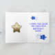 A big shiny gold star in which you can put the name of the birthday boy. The background is blue with lovely white swirls.