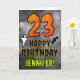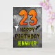 The front of this spooky and scary Hallowe’en themed birthday greeting card design features a large number “23”. It also features the message “HAPPY BIRTHDAY,”, plus a personalized name. There are also depictions of a bat and a ghost on the front. The inside features an editable birthday greeting message, or could perhaps be cleared and left blank if a message is to be written by hand instead. A birthday card like this might be a fun way to send birthday wishes to somebody who is celebrating their twenty third birthday and who was also born on October 31st (Halloween). [~Z0000547]