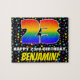 This exciting and cheerful birthday themed jigsaw puzzle design features a large number “23” having a multicolored rainbow spectrum inspired gradient pattern. It also features the message “HAPPY 23rd BIRTHDAY,”, and an editable recipient name. The background has an upbeat, colorful pattern featuring star shapes of various sizes. A joyful, customizable birthday puzzle like this might be a fun way to deliver a birthday greeting message to somebody who is celebrating their twenty-third birthday. [~Z0000607]