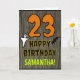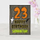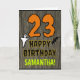 The front of this spooky and scary Hallowe'en birthday themed greeting card design features a large number "23", along with the message "HAPPY BIRTHDAY,", and a personalized name. There are also depictions of a bat and a ghost on the front. The inside features a customized birthday greeting message, or could perhaps be cleared and left blank if a message is to be written by hand instead. A personalized birthday card like this might be a fun way to send birthday wishes to somebody who is celebrating their twenty third birthday and who was also born on October 31st (Halloween). [~Z0000410]