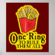Funny t-shirt featuring a box of French fries with a single onion ring added. Ever happen to you? Below that is a tie in to saying "One Ring To Rule Them All". It's a very attractive and funny t-shirt. Great for anytime wear and even for kids too!