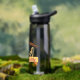 24 oz. Camel Back brand sturdy, durable, clear charcoal-color plastic water bottle with the "Emotional Support Water Bottle" graphic prominently featured. Handwash preferred.