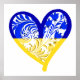 Traditional Ukrainian ornate flower style inside a heart of support. Ukrainian flag colors in support of the country.