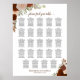 This beautiful wedding seating chart features a hand painted watercolor design rust orange and coral peach roses, along with sprigs of autumn leaves and garden foliage. The traditional layout has space for 240 guests at 24 tables with 10 seats per table. The burnt umber colored script calligraphy title reads "please find your table" and there is space for the names of the couple and wedding date at the bottom. Wonderful way to add rustic elegance and beauty to your wedding reception while making it easy for your guests to find their seats.