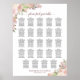 This beautiful wedding seating chart features a rustic boho chic design with blush pink and coral peach roses, along with mauve blossoms and sprigs of eucalyptus leaves and garden greenery. The traditional layout has space for 240 guests at 24 tables with 10 seats per table. The elegant script calligraphy title reads "please find your table" and there is space for the names of the couple and wedding date at the bottom. Wonderful way to add elegance, grace, and beauty to your wedding reception while making it easy for your guests to find their seats.