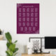 This beautiful wedding seating chart is simple yet elegant. It features a beautiful design of light gray text on a magenta, plum purple, berry, or cassis colored background with lacy silver faux foil floral filigree in the corners. It includes table assignments for 240 guests with 10 guests per table.