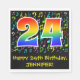 This fun, colorful, and vibrant birthday paper napkin design features a large number "24" with a rainbow spectrum gradient inspired pattern, along with the message "Happy 24th Birthday,", and an editable name. Part of the background features a colorful music notes and symbols pattern. Birthday themed paper napkins like this might be used at a party celebrating a musician’s, a singer’s, a composer’s, or somebody else’s 24th birthday. [~Z0000421]