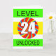 24th birthday card for a video gamer. Any computer gamer will love this card. With the slogan Level 24 Unlocked, this is sure to get a big grin from anyone who loves playing computer games.