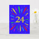 An explosive 24th birthday card! What a wonderful way to send birthday greetings. The number 24 in bright yellow with an explosion of bright colors and stars.