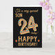 A chic 24th Birthday Card for a very special Son, with the number, 24, in a bright mosaic pattern with a gold-effect outline and all the text in gold-effect lettering (ie not metallic paint). A bright red and gold-effect star is beside the 'Happy Birthday' on this striking digital design by Judy Adamson. The inside message, which you can change, is 'With love,'