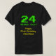 This silly and nerdy shirt design features the message "24 YEARS OLD!", the birthday greeting message "Happy 24th Birthday,", and an editable name. The upper age digits and text feature a geeky, green, pixelated, 8-bit graphics style appearance inspired by that of retro computer games and 1980s video games. The lower greeting message has a nerdy, yellow, classic digital computing inspired look. Shirts like this might be worn by the guests of a birthday party held in celebration of the 24th birthday of somebody who enjoys classic video games or historic computers. [~Z0000455]