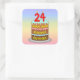 24th Birthday: Fun Cake and Candles + Custom Name Square Sticker