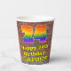 This fun and vibrant urban street art and graffiti themed birthday paper cup design features a large number “24” having a colorful rainbow spectrum gradient inspired pattern. It also features the message “Happy 24th Birthday,”, and an editable name. The background features a brick wall pattern. Colorful, vibrant paper cups like this might be fun to use at a birthday celebration being held in celebration of somebody’s twenty fourth birthday. [~Z0000543]