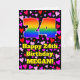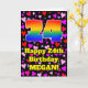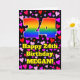 The front of this colorful and cheerful birthday-themed greeting card design features a large number “24” having a rainbow spectrum gradient inspired pattern. It also features the message “Happy 24th Birthday,”, and a personalized name. The background of the front features a pattern of heart shapes with colors like purple, red, and pink. The inside has a personalized birthday greeting message, or could perhaps be cleared and left blank if a message is to be written by hand instead. A cheerful, editable birthday greeting card like this might be sent in celebration of somebody’s twenty-fourth birthday. [~Z0000551]