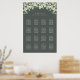 A large dark gray green winter wedding seating chart featuring hand painted snowberries and eucalyptus. The template text is set for 16 tables of 8 - all text is fully editable. Alternative layouts and coordinating items are available in my store.