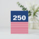 In celebration of America's 250th birthday, a blue field is at the top with 250 in white text. Red and white stripes are across the bottom that are reminiscent of the American flag.