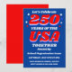 Plain white envelopes are included with paper invitations and will come to fit the invitation size you select. If you don’t need the envelopes, you may choose to not receive them by selecting the dropdown below "Envelopes" and choosing "None." If you’d like to have a design on your envelopes, you can browse all of these available envelopes to find the design that complements your 250 Usa Party Customizable Patriotic Invite.