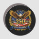 This richly detailed patriotic design commemorates the 250th Anniversary of the United States of America with a bold, ceremonial emblem. At its heart, a majestic bald eagle spreads radiant golden wings, symbolizing strength, vigilance, and enduring freedom. Behind the eagle, a deep navy star-filled circle evokes the American flag and the nation’s storied past. A dynamically flowing American flag sweeps beneath, adding motion and pride to the composition. Striking metallic gold numerals “250” anchor the design, flanked by the historic dates 1776 and 2026.