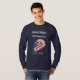 Beautiful and elegant long sleeve t-shirt for men to commemorate the 250th anniversary of the United States. The t-shirt shows the name of the country on the top, plus 250th anniversary and the dates 1776-2026 on the bottom, all in white and creating a nice contrast with some dark colors such as grey or black. The image of an American flag appears in the center in a diagonal position like if it were waving in the wind.