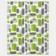 An original hand drawn retro modern style design made up of dark grey rectangles of lines or stripes with patches of a lighter grey with a color.