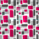 An original hand drawn retro modern style design made up of dark grey rectangles of lines or stripes with patches of a lighter grey with a color. This pattern is a vector graphic so can easily be made larger or smaller