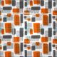 An original hand drawn retro modern style design made up of dark grey rectangles of lines or stripes with patches of a lighter grey with a color. This pattern is a vector graphic so can easily be made larger or smaller