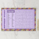 Personalize the happy birthday text with the childs name, for kids birthday parties, or restaurant table decor. This fun find word game is birthday themed. The purple and bold text can be changed to any color, as well as the light pastel mauve background. Personalize to suit event colors. The very light muave center large rectangle can also be changed to any pastel color.
