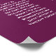 Make your wedding reception beautiful with this seating chart. It features a simple yet elegant design with white text on a magenta, plum purple, cassis, or berry colored background with a silver faux foil floral border. This chart shows table assignments so your guests will have an easy time finding the right table.