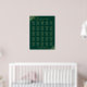 This beautiful wedding seating chart includes table assignments for 250 guests with 10 guests per table. The design is simple yet elegant featuring gold text on an emerald green colored background with lacy faux foil floral filigree in the corners, and calligraphy script reading: please find your table.