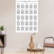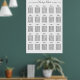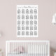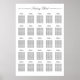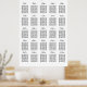 Up to 25 Table layout, laid out by table number, not names, with up to 12 people per table. A simple black and white seating chart; click "customize it" to move columns, change fonts, colors, background color or size of poster. White text on colored versions also available. Click and drag over tables, (starting from off the page) to move more than one table at a time.