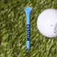 Make, design, create your own personalized custom Golf Tees. Set of 25 BLUE golf tees, customized on the shaft of the tee (2" long text or image). Printing on the top of tee also available. Choose from green, pink, bamboo, blue or white color golf tees. Personalised golf equipment for birthday, Christmas gifts, wedding favors, and promotional sports business, school, and college recreation.