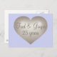 This postcard features a silver heart with a white-washed center containing template text for the names of the bride and groom and the words "25 years" in a cursive silver font. Click "Customize it!" to re-size/re-position silver heart, change background color, and personalize text. The reverse side of the postcard is blank, awaiting your personalized text or handwritten sentiments. Choose font style and color; adjust text size and layout. Great for a 25th wedding anniversary celebration save-the-date.