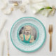 25 Your Photo Random Number Pattern Teal/White Paper Plates