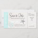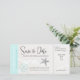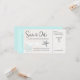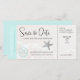 Boarding Pass to the Beach, 25th wedding anniversary save the date or invitation to a beach celebration. Edit text and details as desired on this elegant save the date boarding pass announcement. Seashore design boarding pass with soft tropical turquoise accents and starfish.