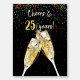 Champagne toast on black with colorful confetti for 25th wedding anniversary party.