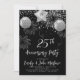 A modern glitzy and glam dazzling sparkly 25th silver jubilee anniversary party invitation featuring a champagne toast, balloons, gold glitter confetti, and gold fireworks on a black background with stylish modern script type. Gold balloons in the shape of the number 25. Eye catching and bold and glittery style.