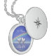 Locket necklace with my image of silver hearts floating on the water under a rainbow.