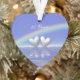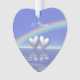 Ornament with my design for 25th Anniversaries of two silver hearts reflected in the water with a rainbow above. Text says "25 Years".