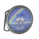 Belt buckle with my design of 2 silver hearts floating on the water under a rainbow, and text that says "25 Years".