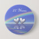 Pin with my design of silver hearts floating on the water under a rainbow with customizable text that says "25 Years".