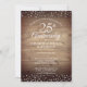 25th Anniversary Silver Hearts Rustic Wood Boho Invitation