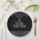 Elegant silver lace border on black background for 25th wedding anniversary.