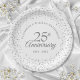 25th Anniversary Silver Love Hearts Confetti Paper Plates