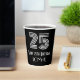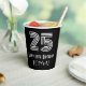 This 1920s-1930s style inspired and vintage style birthday-themed paper cup design features a large art deco inspired style number “25”, in addition to the birthday greeting message “Happy 25th Birthday,” and an editable name. It also has a black-colored background. Birthday themed paper cups like this might be used at a party celebrating somebody’s 25th birthday. [~Z0000542]