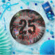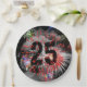 Fireworks in black night sky with clouds and stars for 25th birthday party.