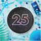 Glowing neon sign on black background with confetti for 25th birthday party.