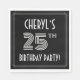 This elegant and Roaring Twenties inspired twenty-fifth birthday celebration/party paper napkin design features a customizable name, a fancy art deco style inspired number “25th”, the message “BIRTHDAY PARTY!”, and a border pattern consisting of lines. The background is colored black by default, but it can be customized to a different color, if desired. Luxurious paper napkins like these might be used when hosting a birthday party for somebody in celebration of their twenty fifth birthday. [~Z0000616]